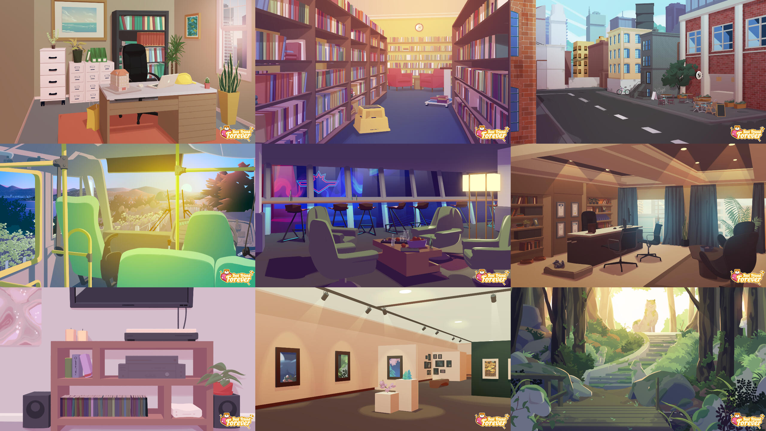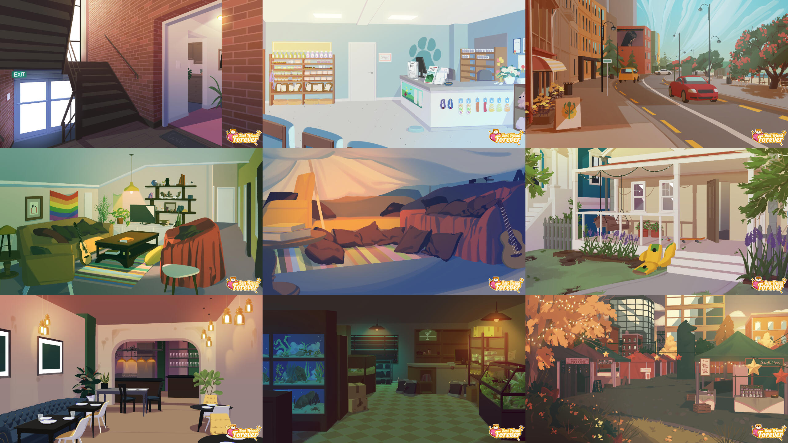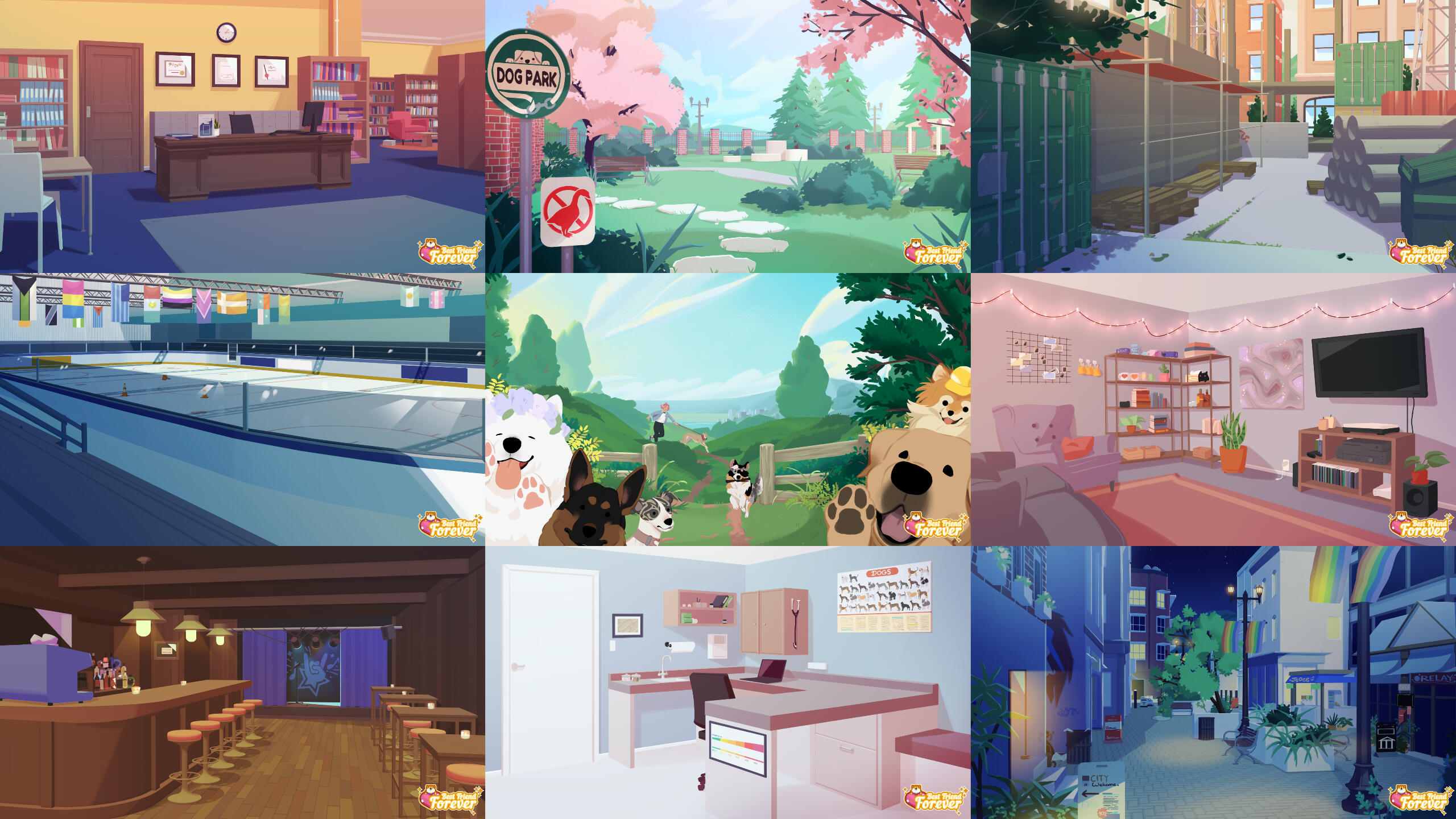 A New Zealand game studio that primarily focuses on developing simulation games of all types.During my time at Starcolt I worked on Best Friend Forever. It was the world’s first simulation game to combine pet care and dating (just not necessarily at the same time). Train, pat and play with your very own dog to form a bond that will last the ages. With your four-legged companion by your side, meet, woo and cherish the many cuties of Rainbow Bay’s thriving singles scene.I worked the sole artist of the project and was in charge of all art related assets. This includes, but not limited to concept art, environments, characters, graphic design, rigging and animation. I had full creative control and leadership.View website hereDeveloped in Maya, Adobe Photoshop, Adobe After Effects, Live2D and run in Unity.